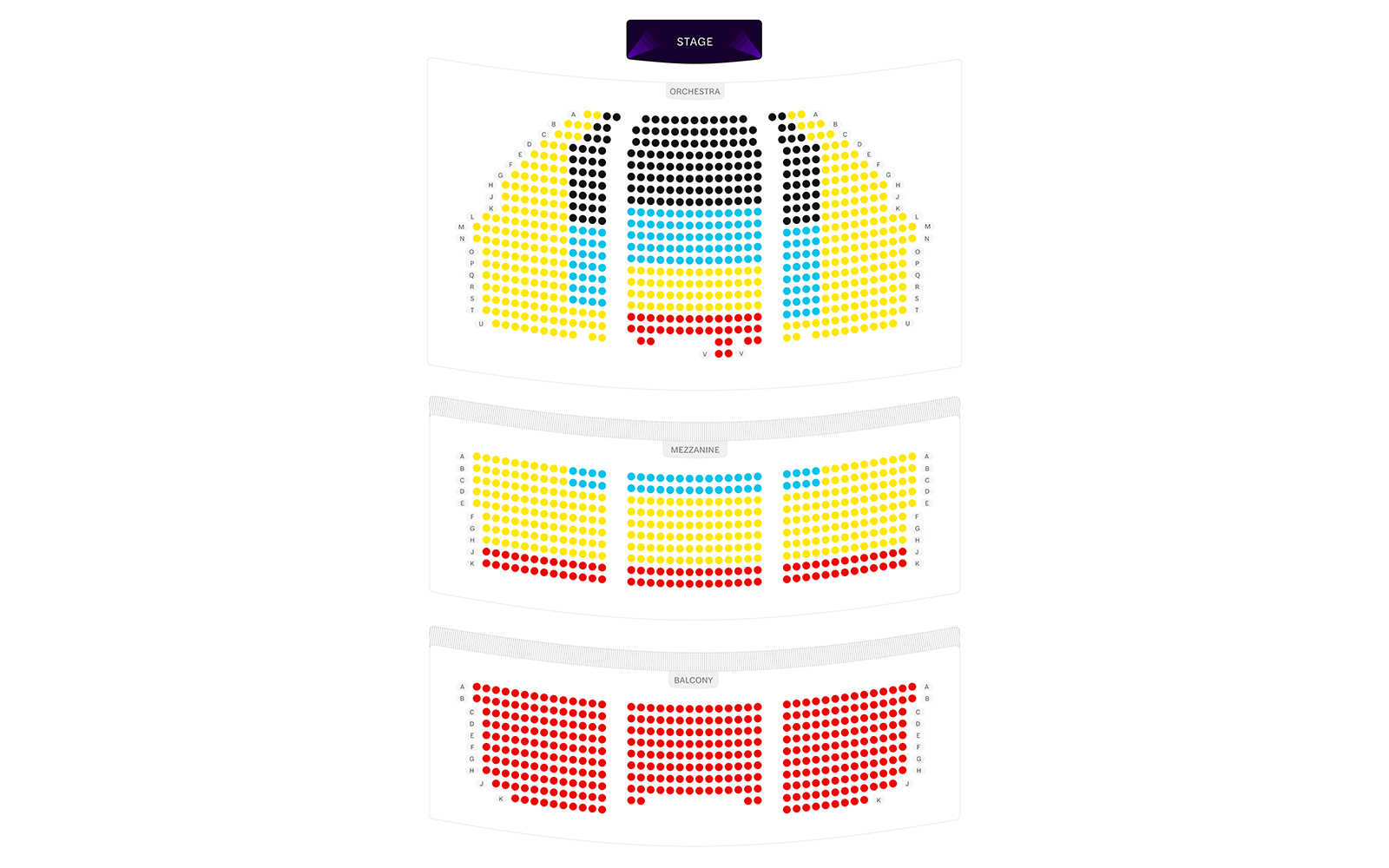 The best seats are in the center of the Orchestra, rows F to M, and the front rows of the Mezzanine, rows A and B, for optimal views of the stage.